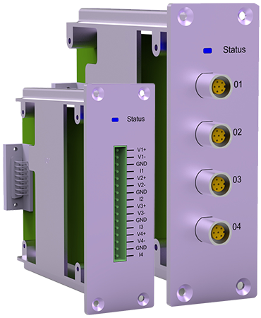 采集模塊化設計,1個模塊4通道,通過DB多芯高速緊固端子,接于背板,可組成最多16通道采集儀。